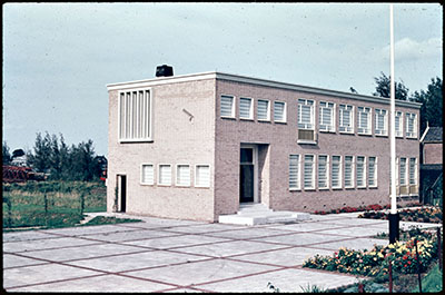 De zgn. school met de klok aan de Molenstraat in Kinderdijk.