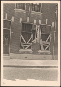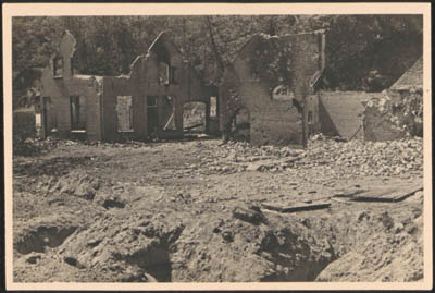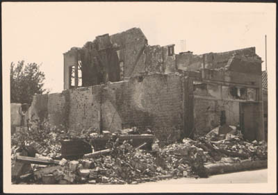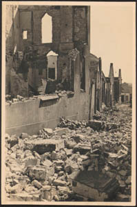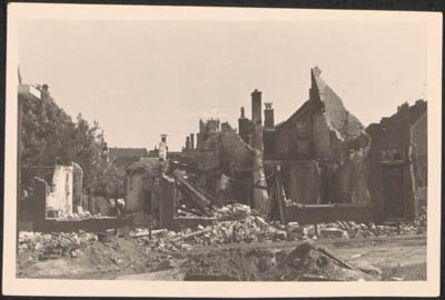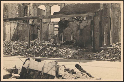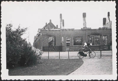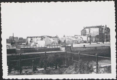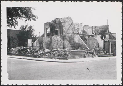 Door beschietingen in mei 1940 beschadigde bebouwing aan …