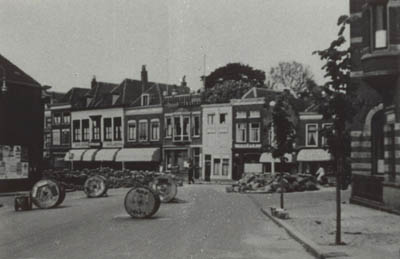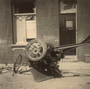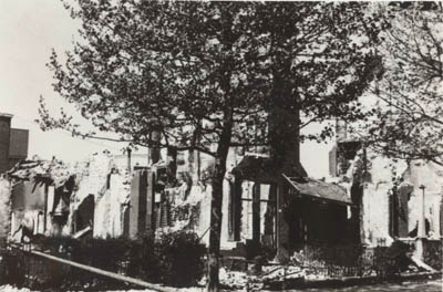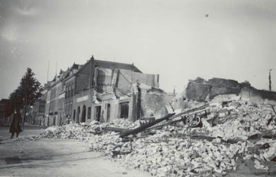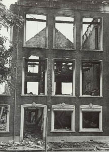 Verwoeste panden door beschietingen in de Havenstraat op …