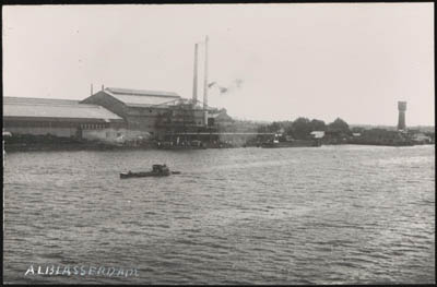 De Dam in Alblasserdam. Het pand met de klok is het …