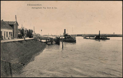 Aanlegsteiger van rederij Fop Smit aan de West Kinderdijk …