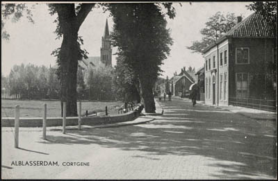 Cortgene vanaf de Havenstraat in Alblasserdam. Tussen de …