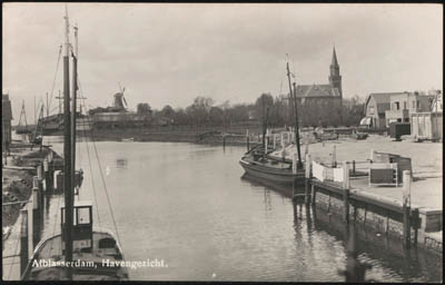 Haven van Alblasserdam. Links de Oude Werf en molen Ons …