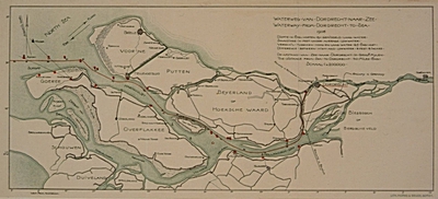 Kaart met verbindingen tussen Dordrecht en de Noordzee; …