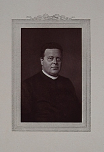 Portret van predikant dr Willem Moll in toga met bef, op …