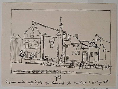 Tekening van het huis Boucquet, gezien vanuit het oosten, …