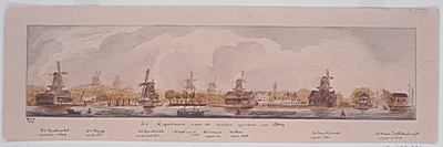 Gezicht vanaf de Singel over weiland en blekerijen langs …