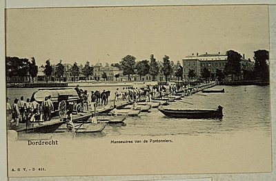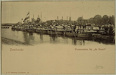 Oefening Korps Pontonniers 1900-1905; bouwen pontonbrug