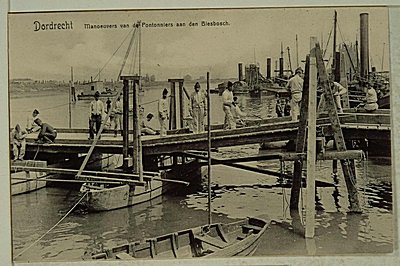 Oefening Korps Pontonniers 1906-1907; bouwen pontonbrug