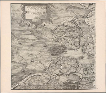 Gezicht over de Lange IJzerenbrug op de Grote Kerk over …