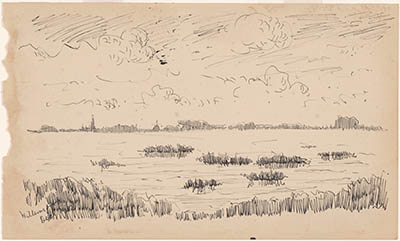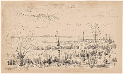 Rietlandschap met knotwilgen bij Willemsdorp