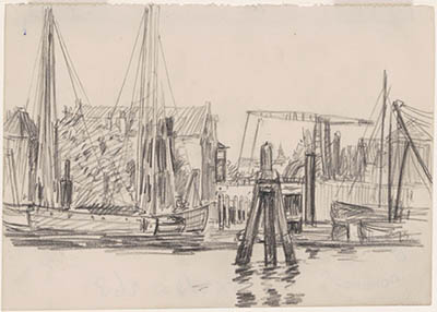 Tekening van de Stationsweg richting station.