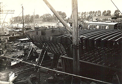 Scheepswerf Hoebee aan de Lijnbaan. Op de achtergrond het …