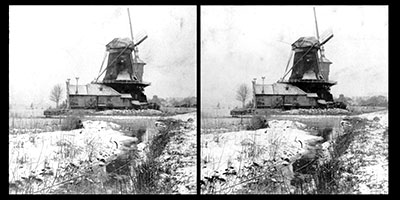 Stereofoto vanaf de gaanderij van molen Welgelegen - ook …