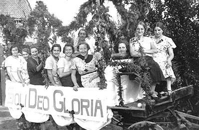 Soli Deo Gloria op Koninginnedag. Zittend v.l.n.r. Kok, …