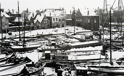 Gezicht over de Nieuwehaven op de Knolhaven bij de lange …