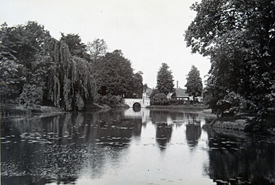 Gezicht op de vijver bij de begraafplaats aan de …