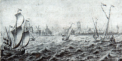 Tekening over de Bomhaven richting Korte Geldersekade en …