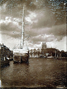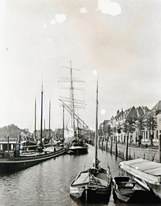 Gezicht op enkele schepen in de Binnen Kalkhaven