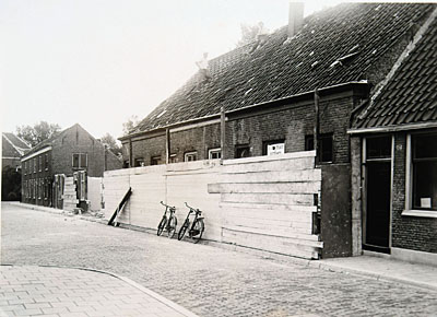 Gezicht op enkele gebouwen aan het Kasperspad. Het grote …