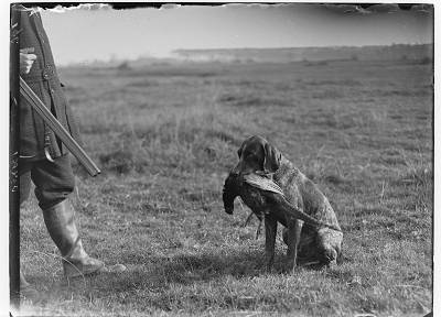 De hond van de heer P. Lotsy tijdens de jacht in Zeeland