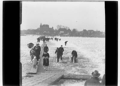 De Oude Maas dichtgevroren men kon via vlonders, van …
