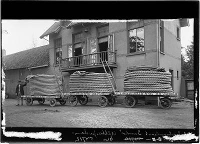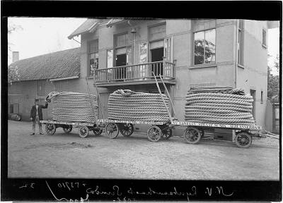 Eigenaar (?) met wagens met touwen van Touwfabriek N.V. …