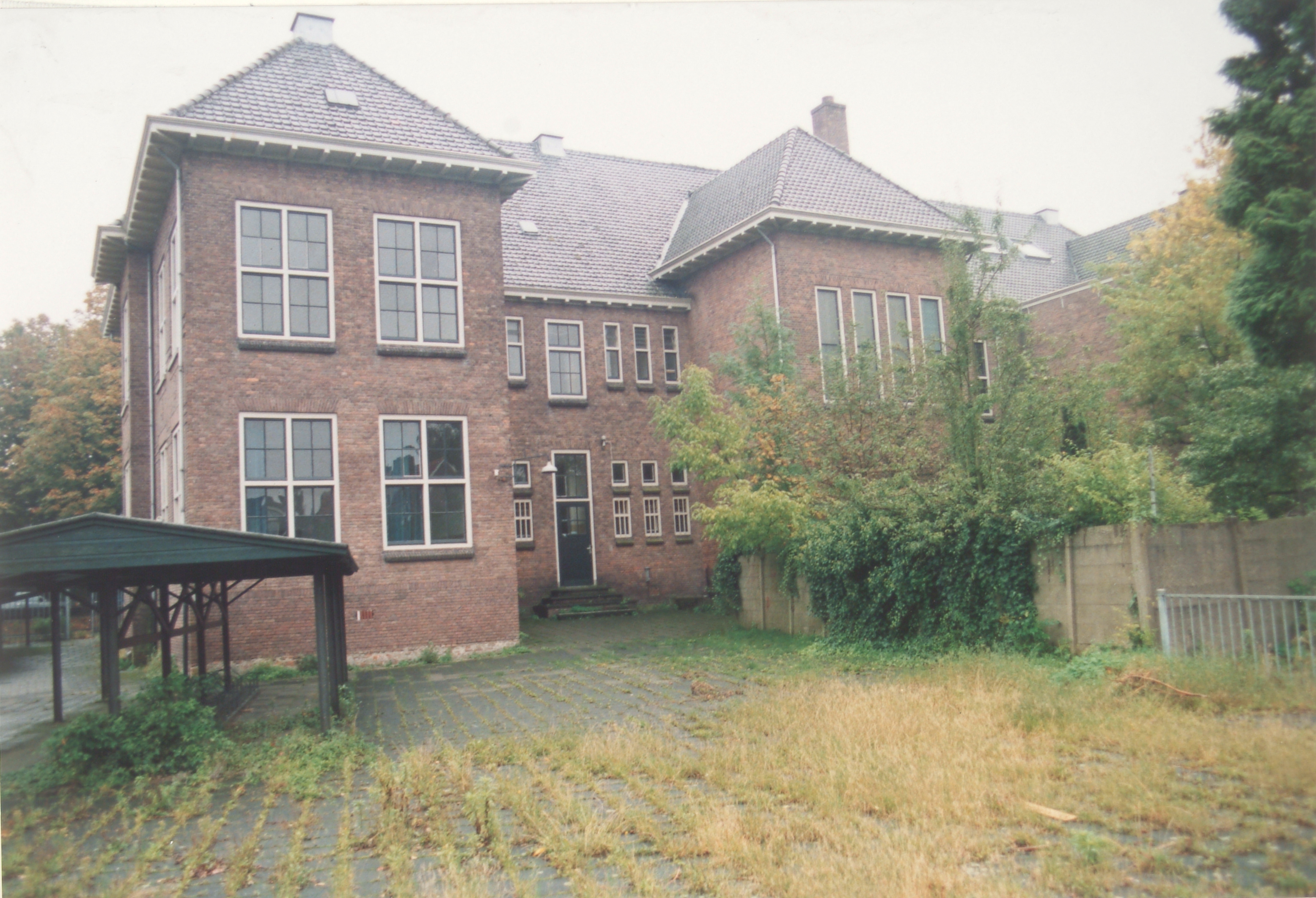 Schoolplein met fietsenstalling van de Mulo aan de Groenedijk