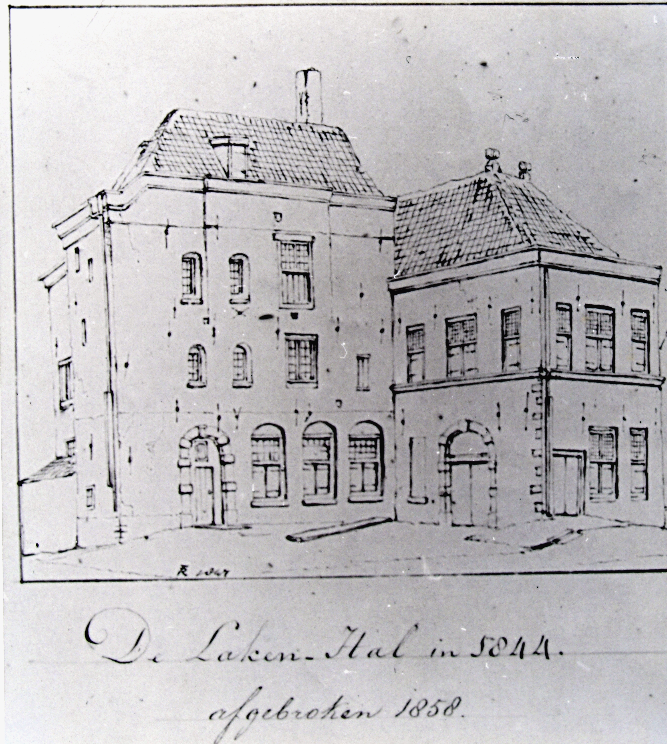 De Lakenhal op de Varkenmarkt, afgebroken in 1858.