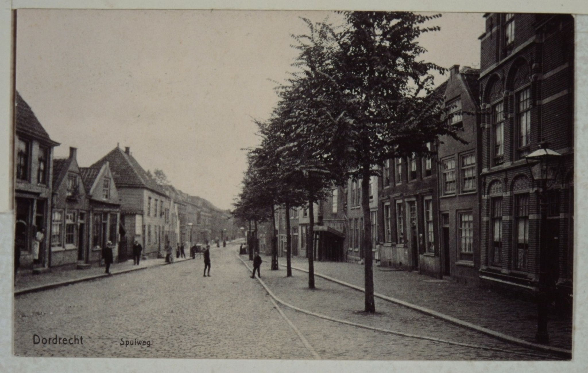 Dat de Spuiweg zo BREED begon komt door dat er in het verleden vanaf de Platte Hellingen een sloot liep tot nabij de links gelegen Schietershof, thans een gedeelte van de Willem Dreeshof.