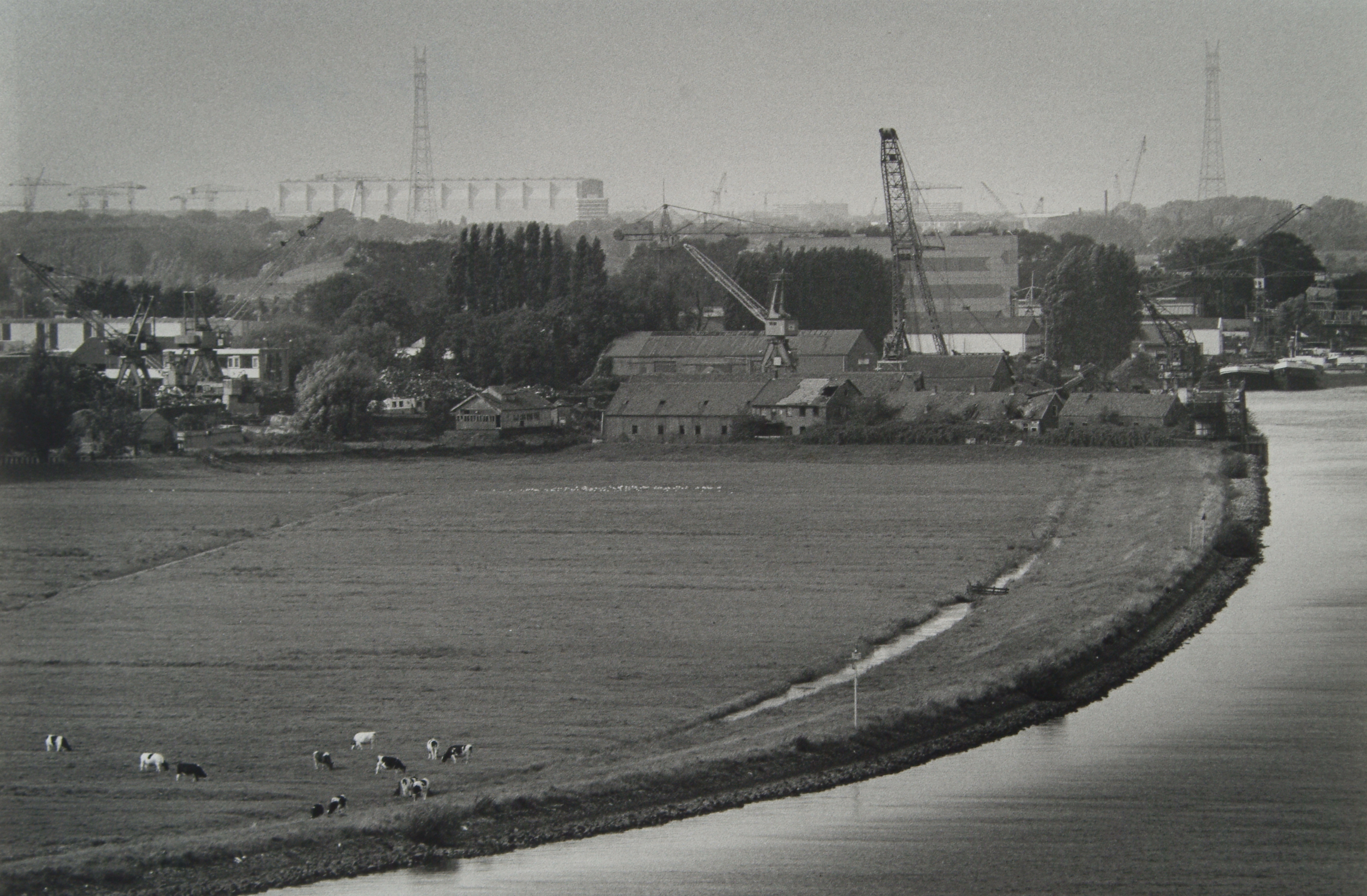 In de verte de rivierkruissingsmasten van de 150 kV-lijn Waalhaven - Krimpen a/d IJssel.