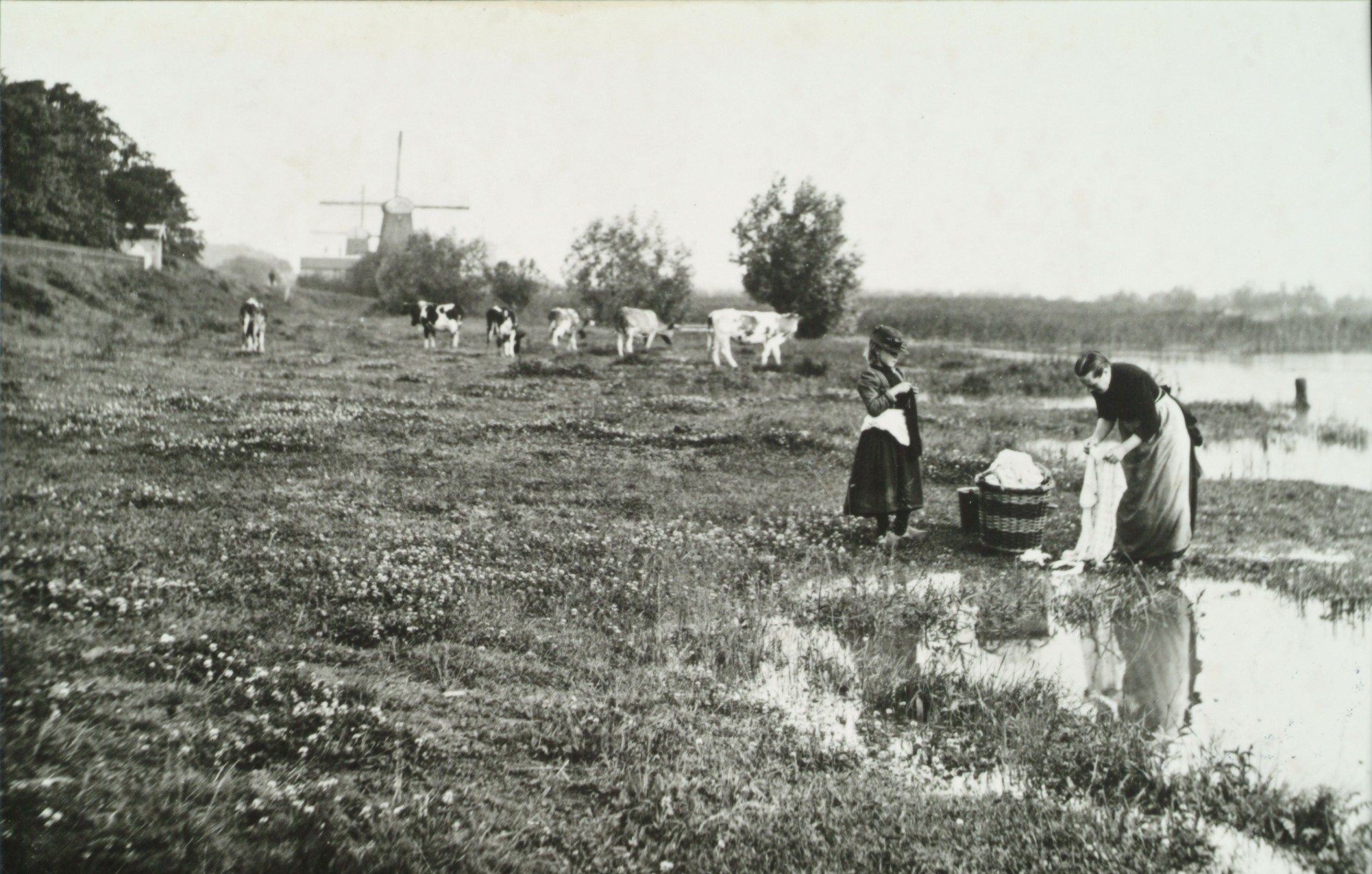 - richting stad omstreeks 1905 met op de achtergrond de molens "De Jager" en "De Windhond".