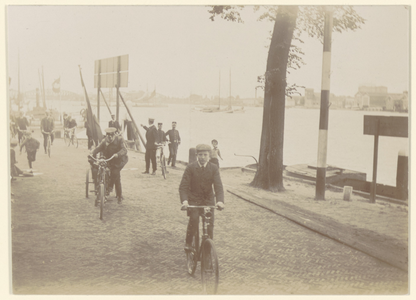 - Fietsers op de Buiten Walevest; rechts de Oude Maas en de Zwijndrechtse oever.