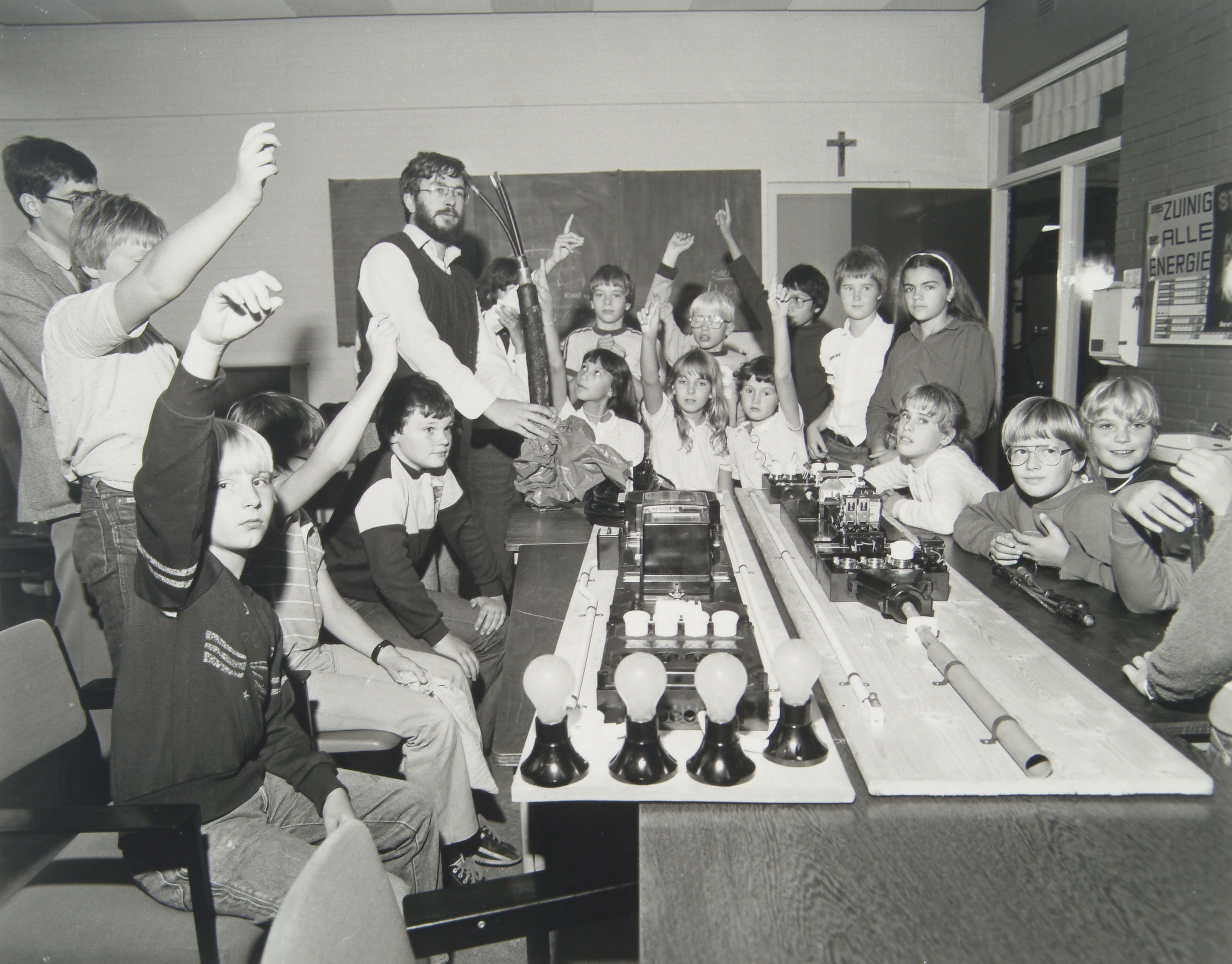 - Een schoolklas krijgt voorlichting over energiebesparing