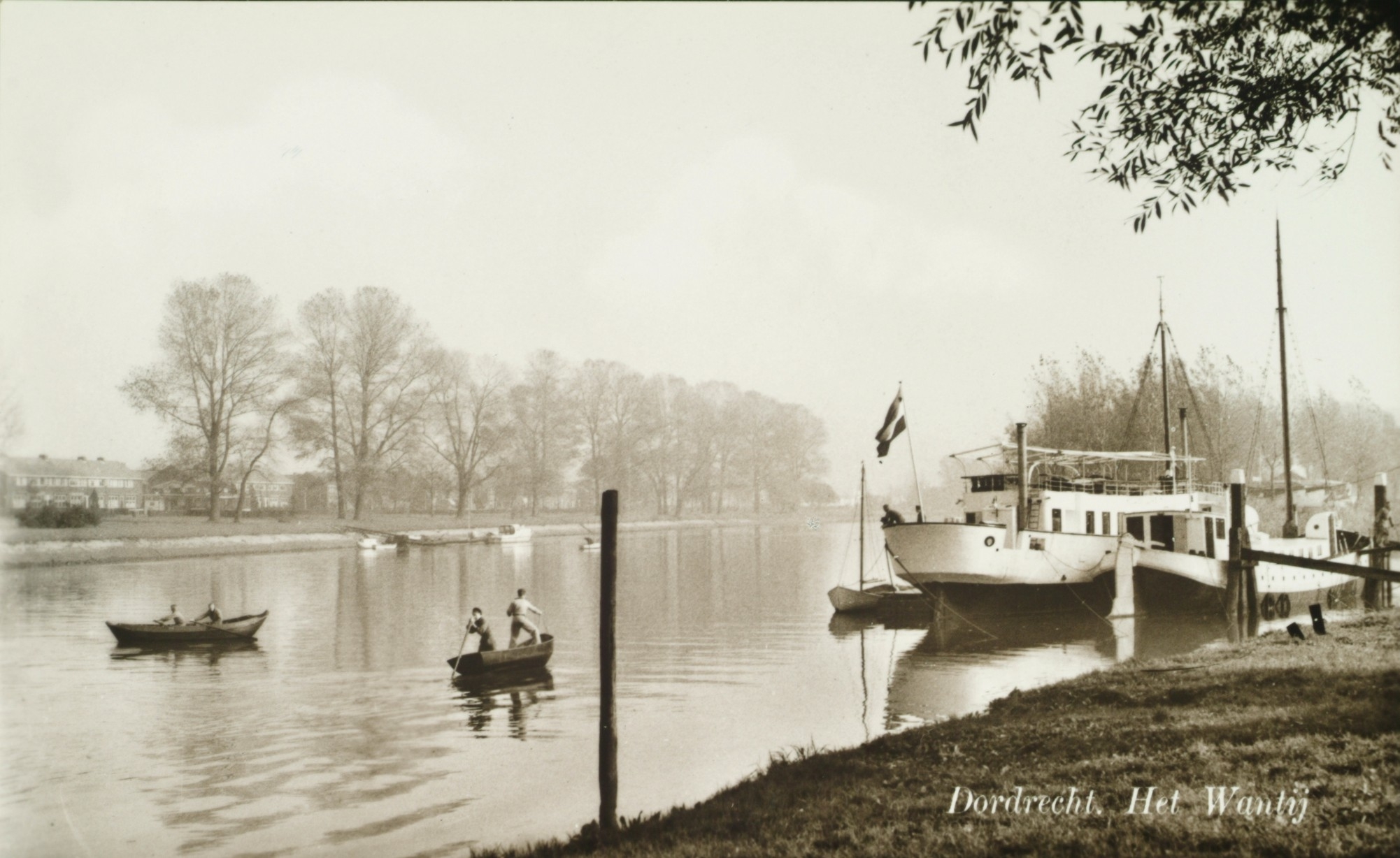 - riviergezichten roeiboten schepen