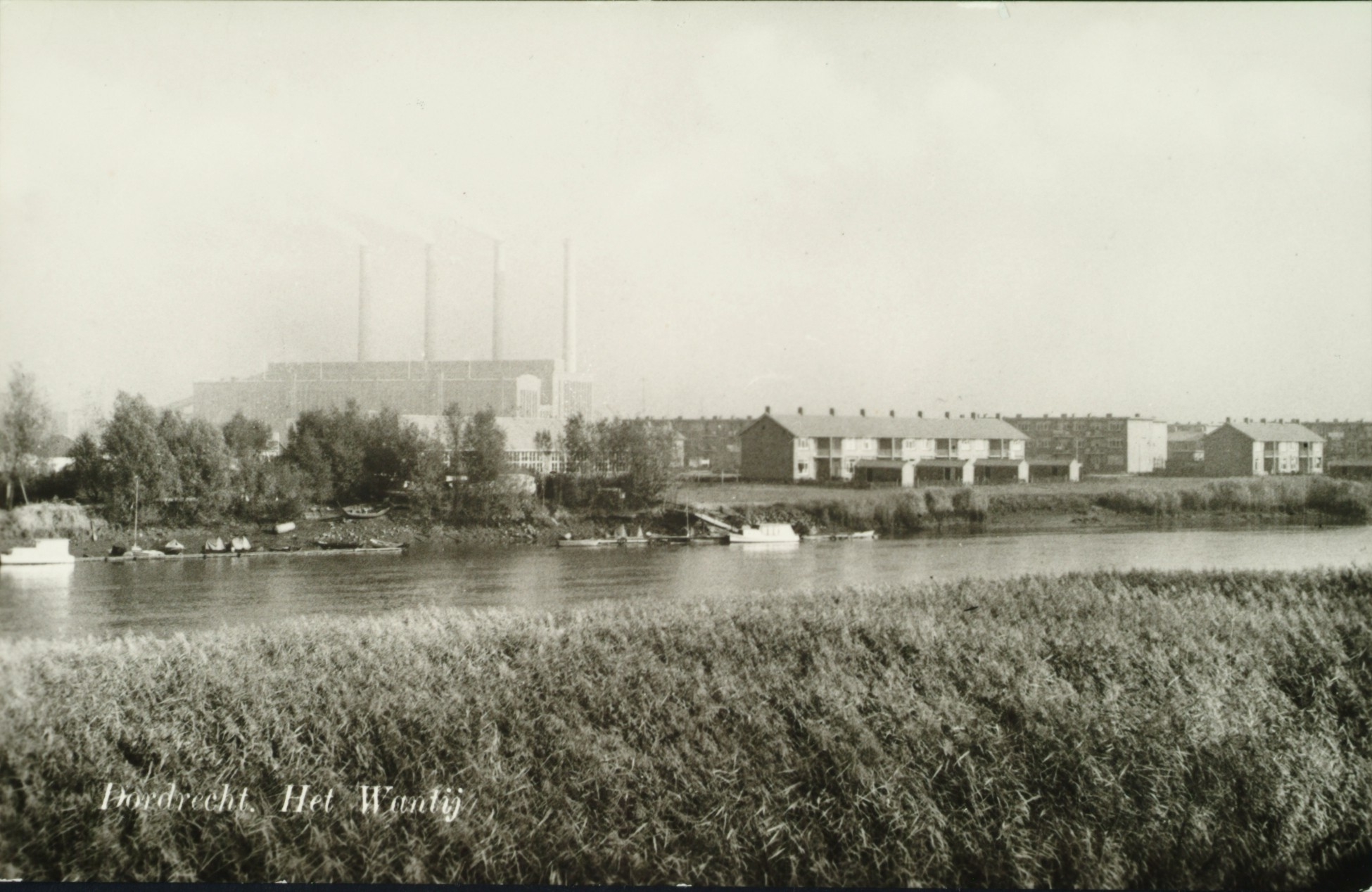 - Zicht op de wijk "De Staart" vanuit het Wantijpark. Op de achtergrond de electriciteitscentrale van het G.E.B.