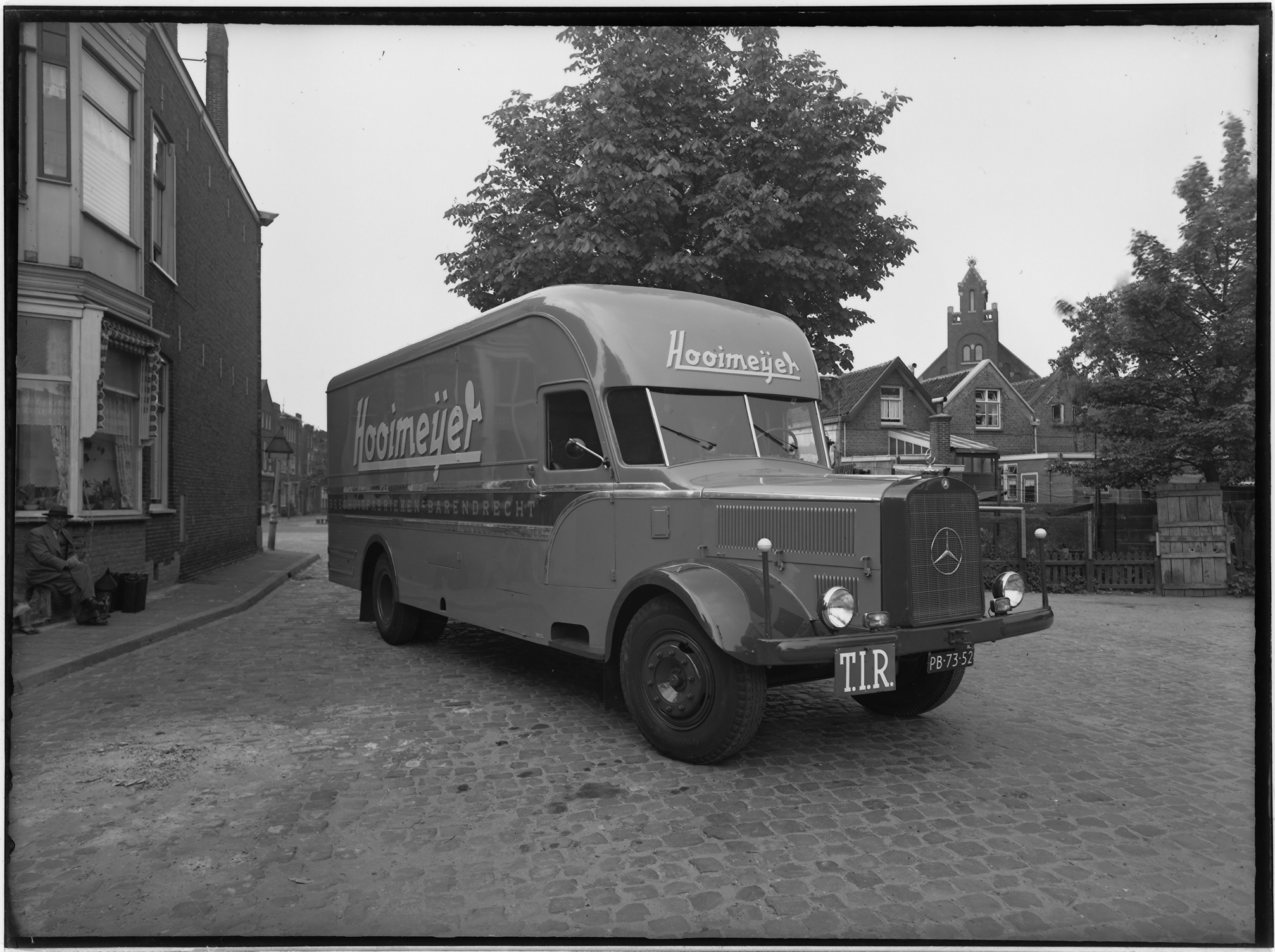 Vrachtwagen van Hooimeijer beschuitfabrieken in Barendrecht op het pleintje bij de Spuihaven aan het eind van de Blekersdijk