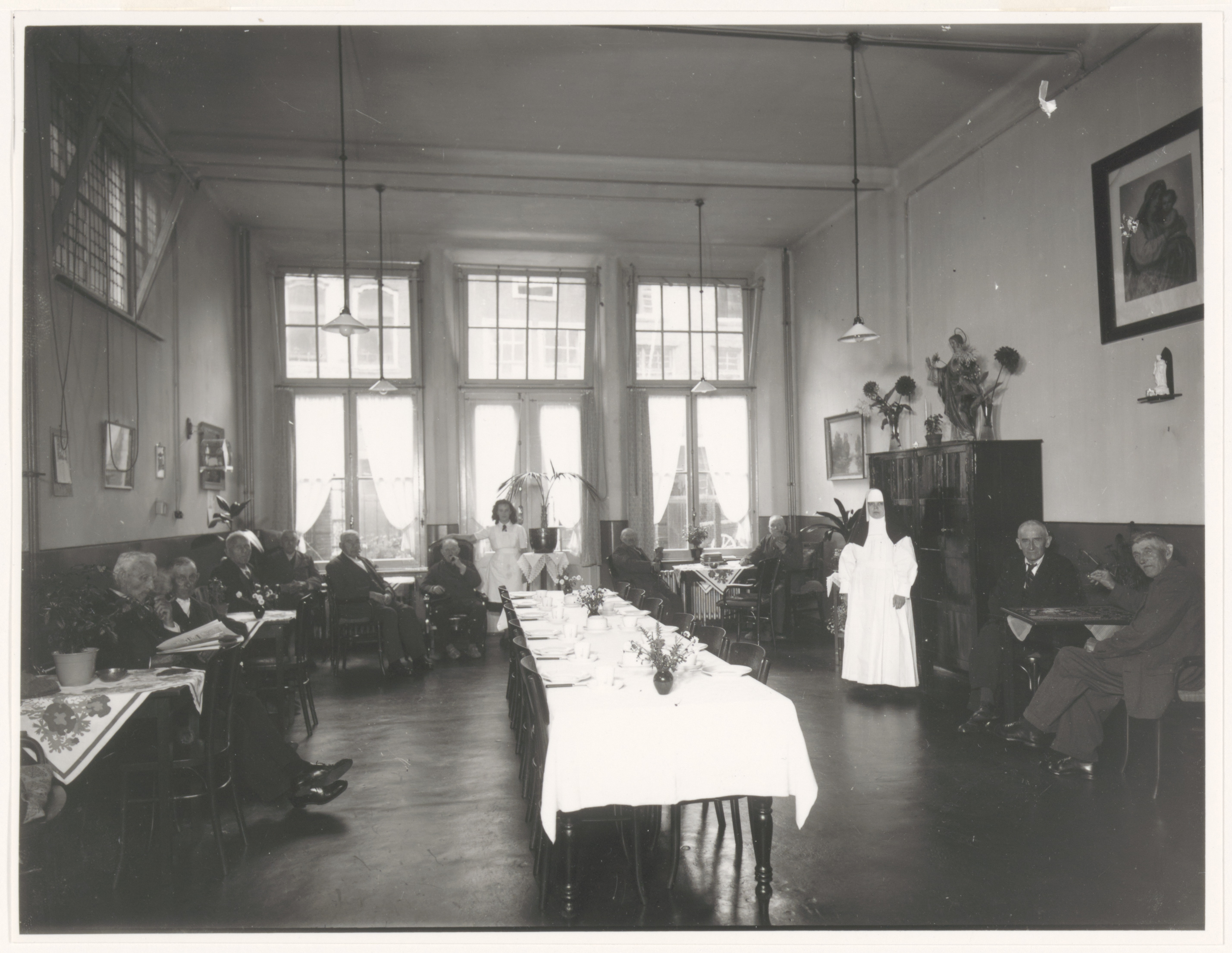 Eetzaal in het Sint Jacobsgesticht aan de Grotekerksbuurt.