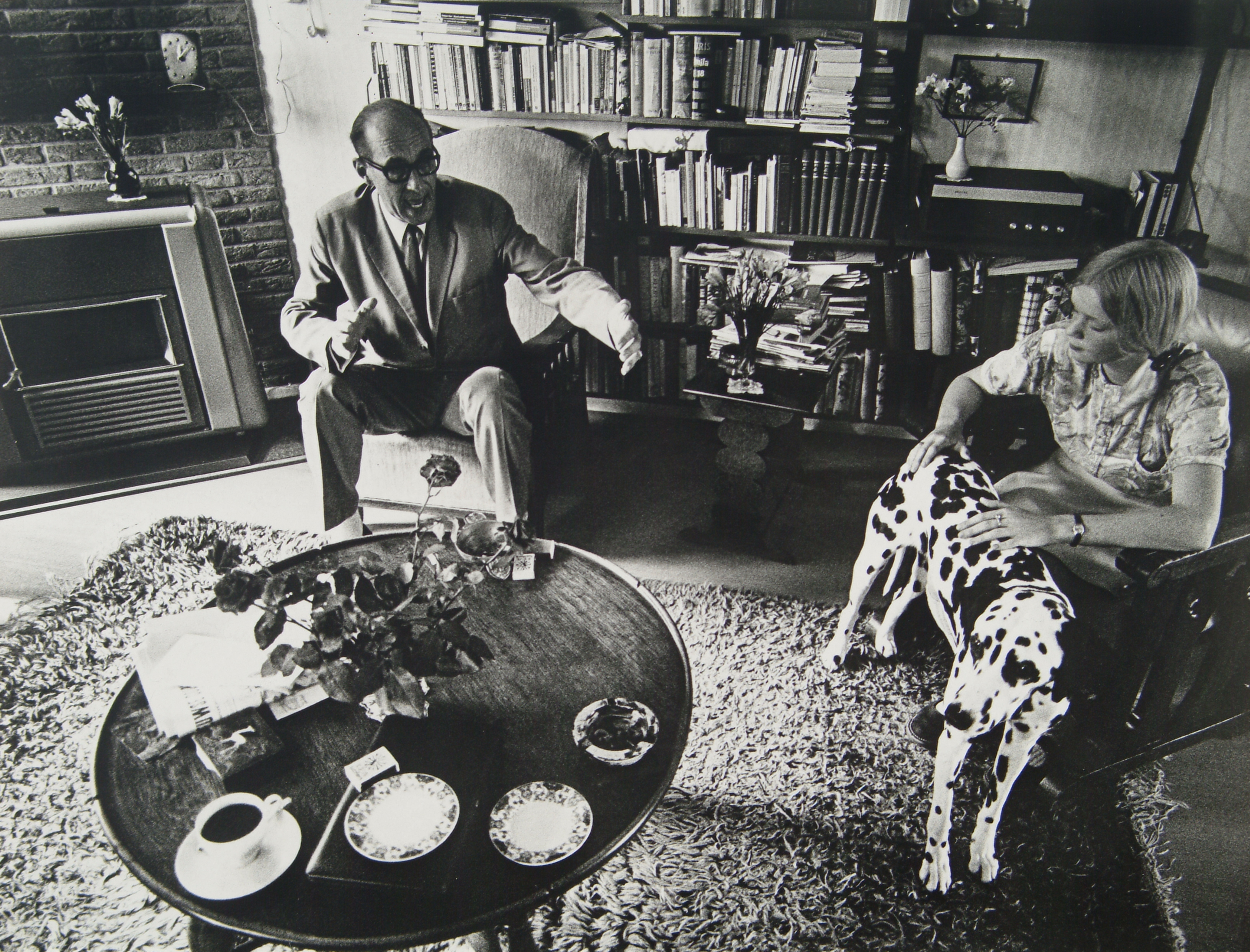 De nieuwe burgemeester van 's-Gravendeel D.Lodder met dochter en Dalmatiër in zijn woning in de Drieweg waar hij van 1956 tot 1971 burgemeester was