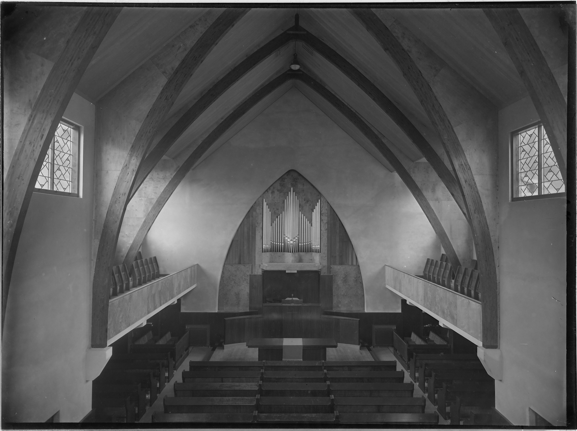 - Interieur kerkgebouw Vrije Evangelische Gemeente aan de Vrieseweg