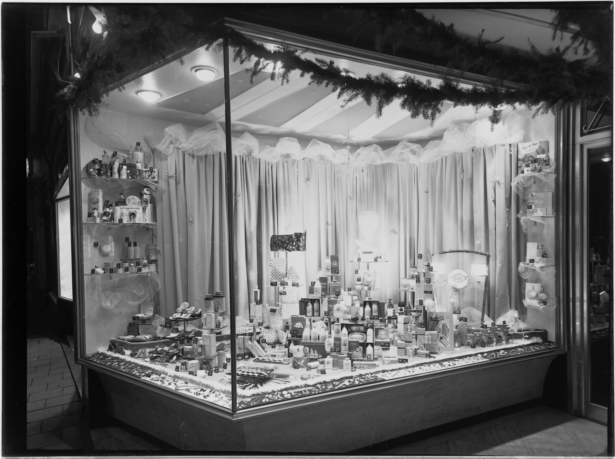 - Etalage parfumerie en bijouterie EMBA in de Visstraat