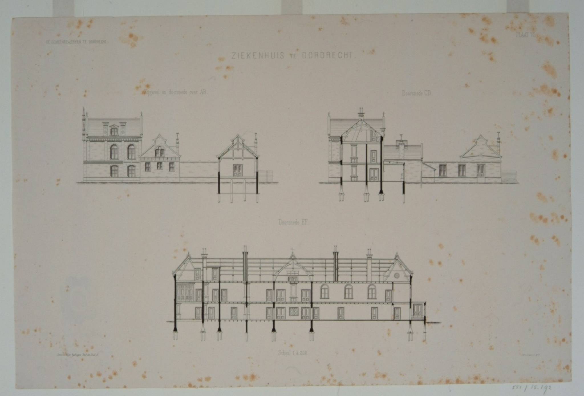 Bouwkundige tekening van de zijgevels van het Gemeentelijk Gast- of Ziekenhuis aan het …