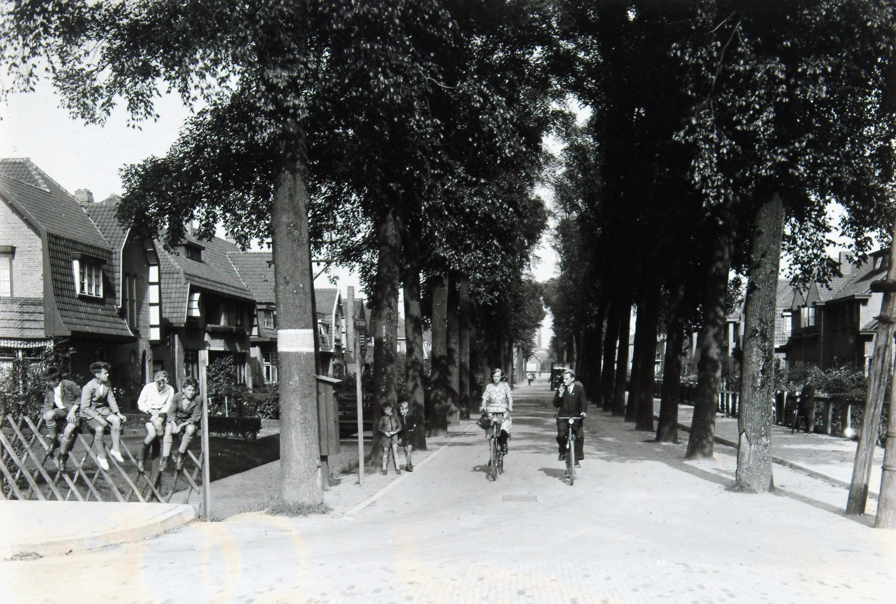 - De Scheidingsweg gezien vanaf de Dubbeldamseweg richting Krommedijk. Op de achtergrond zie je de schoorsteen van het Gemeente ziekenhuis