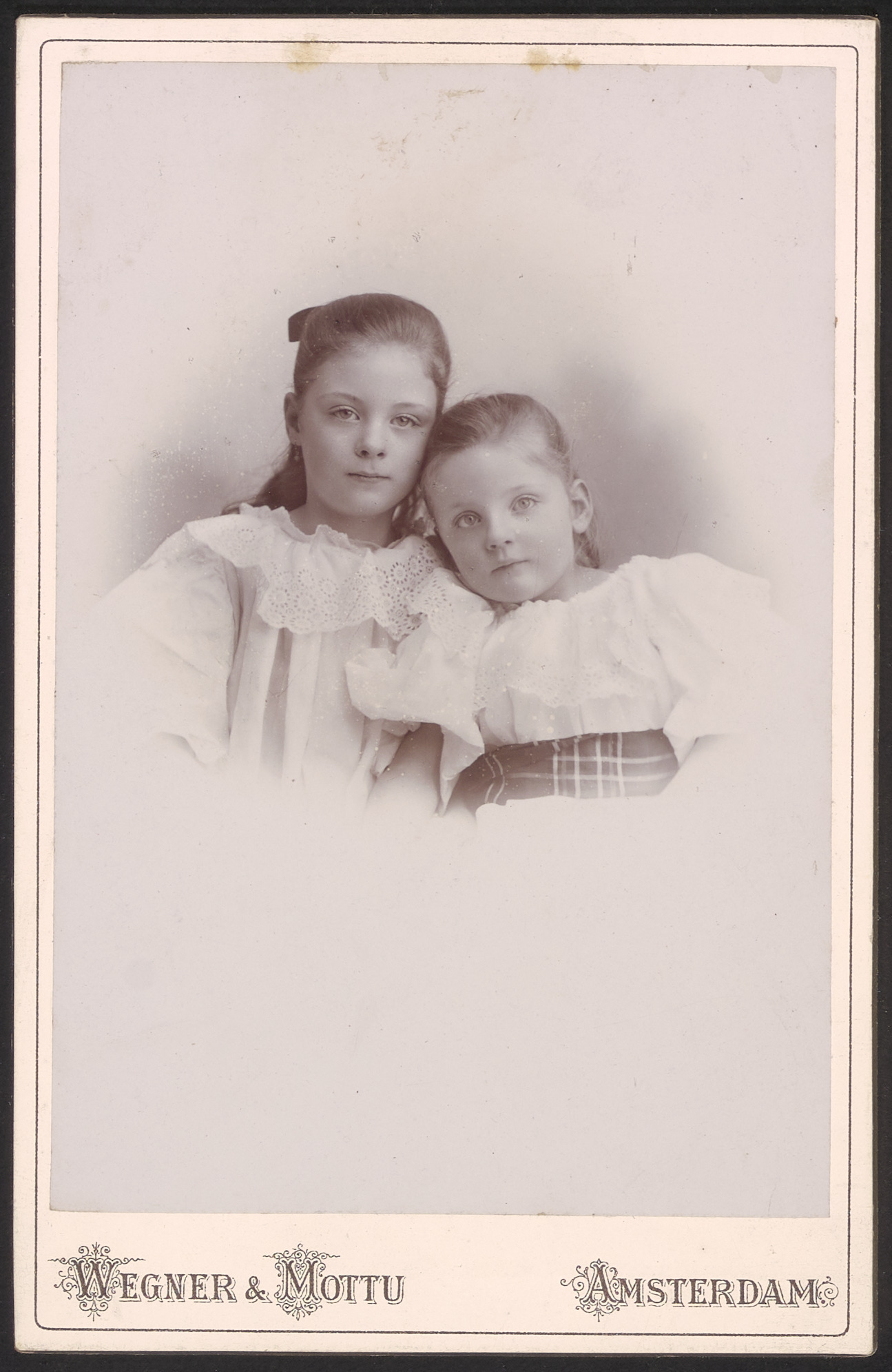 Marie Coralie Vriesendorp (1890-1979), links, en Charlotte Louise Vriesendorp (1893-1977), rechts. De kinderen van Martinus Adriaan Vriesendorp (1865-1931) en Henriette Antonia Roodenburg (1869-1948)