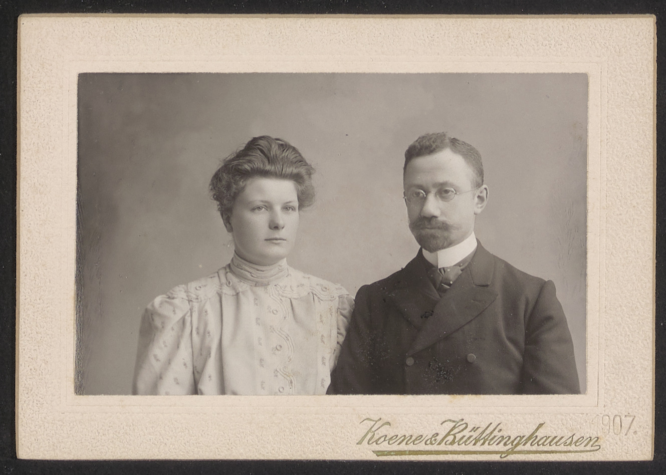 Isaac Vriesendorp (1873-1964), arts en kippenfokker, met zijn vrouw Diederieka van Luttervelt (1880-1956). Huwelijk 1907.