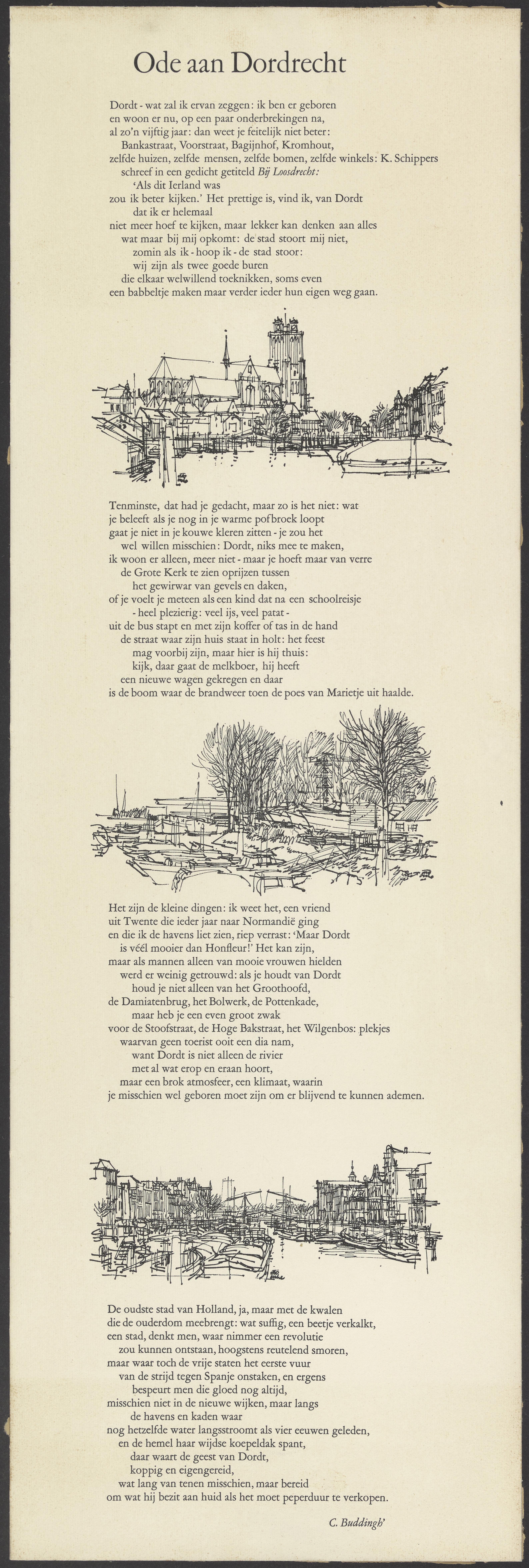 Ode aan Dordrecht, Dordt - wat zal ik ervan zeggen: ik ben er geboren en woon er nu, op een paar onderbrekingen na, al zo'n vijftig jaar .... - C. Buddingh'