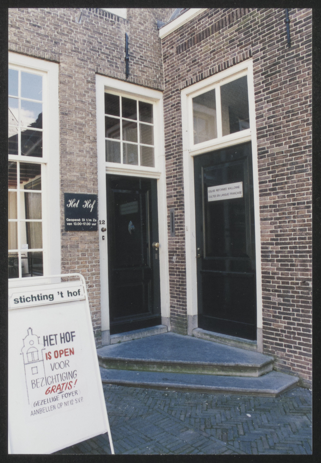 ingang Hof 12, stichting 't Hof / Eglise Wallonne, cultes en langue Française