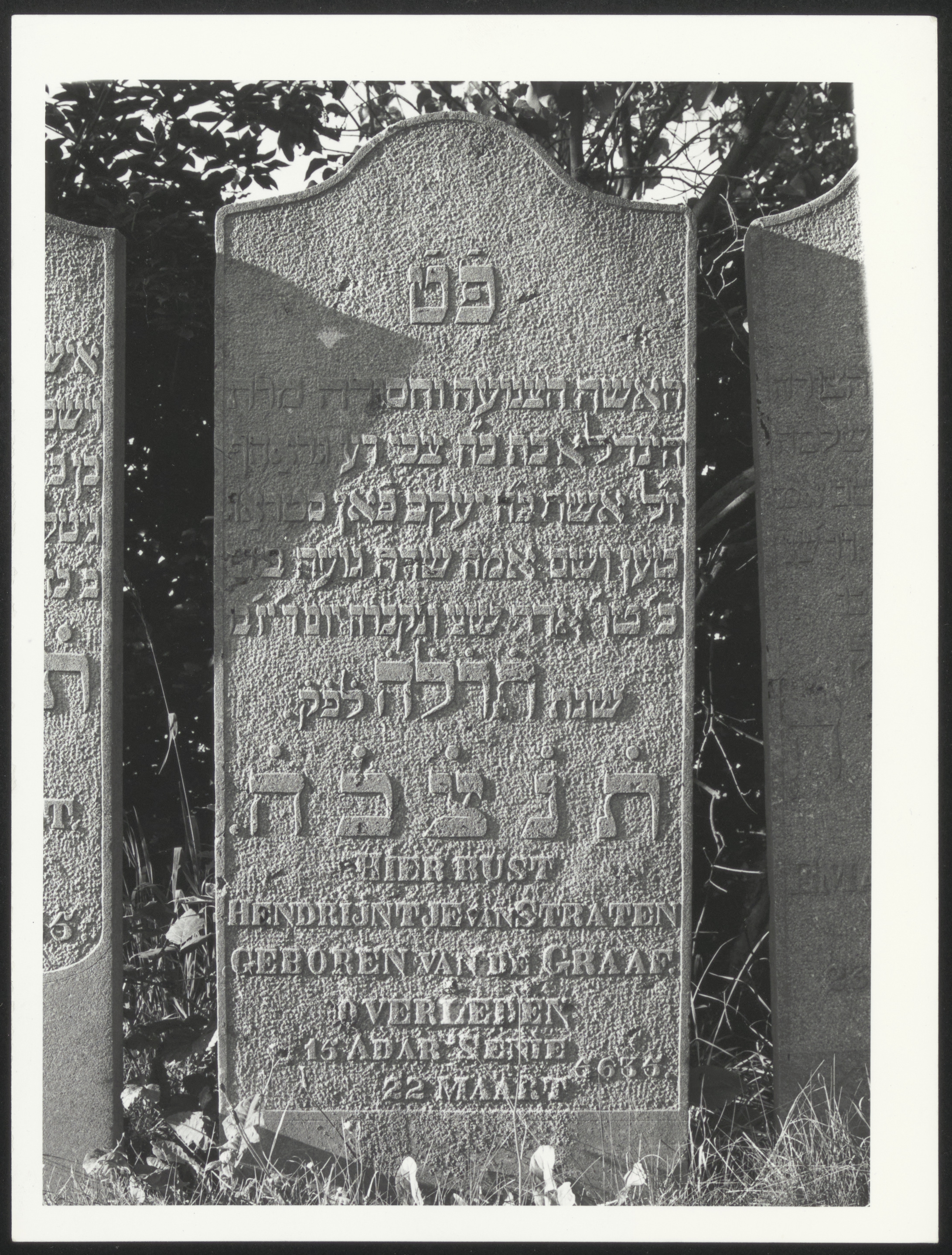 grafzerk ----- JOODSE BEGRAAFPLAATS (Achterweg/Nieuweweg) Hendrijntje v.d. Graaf van Straten, overl. 22-3-1875 (rij A nr. 24) [bron: www.dordtenaZOEKer.nl]
