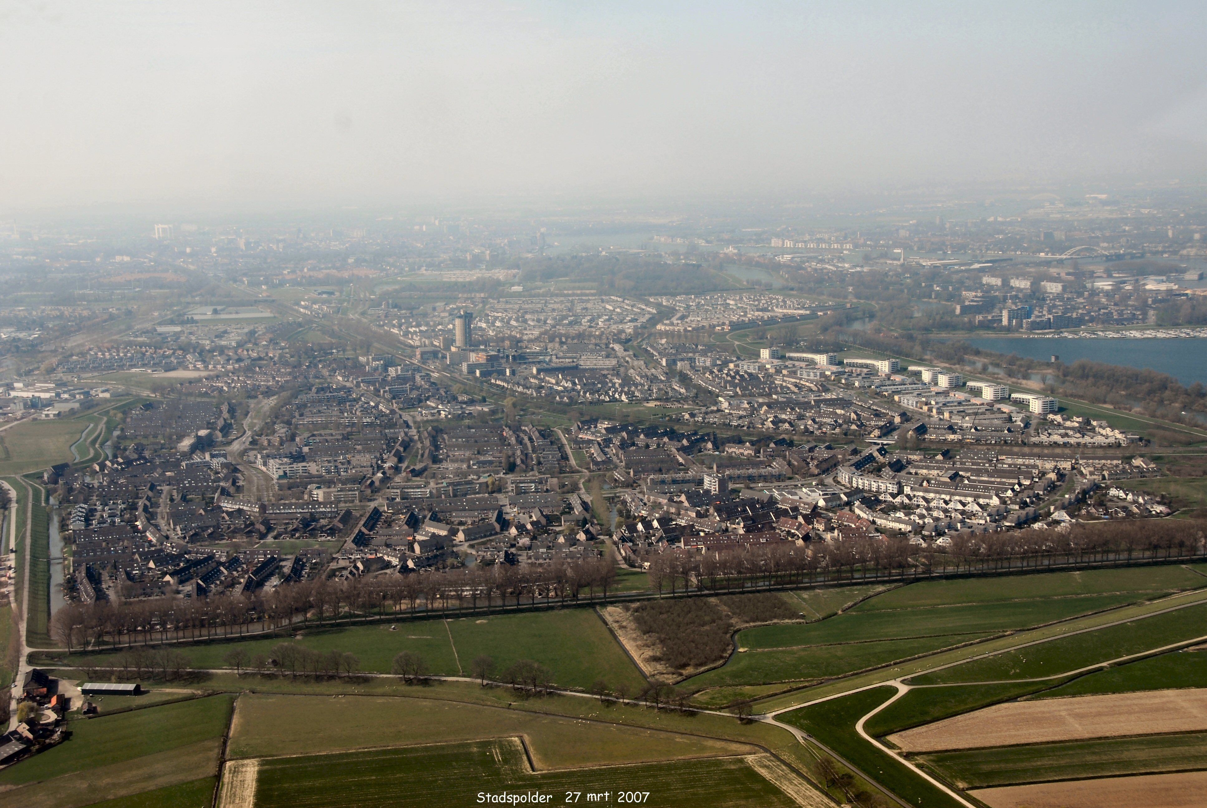 Stadspolder met links onder de Zeedijk en rechts de Wantijdijk.mrt.2007