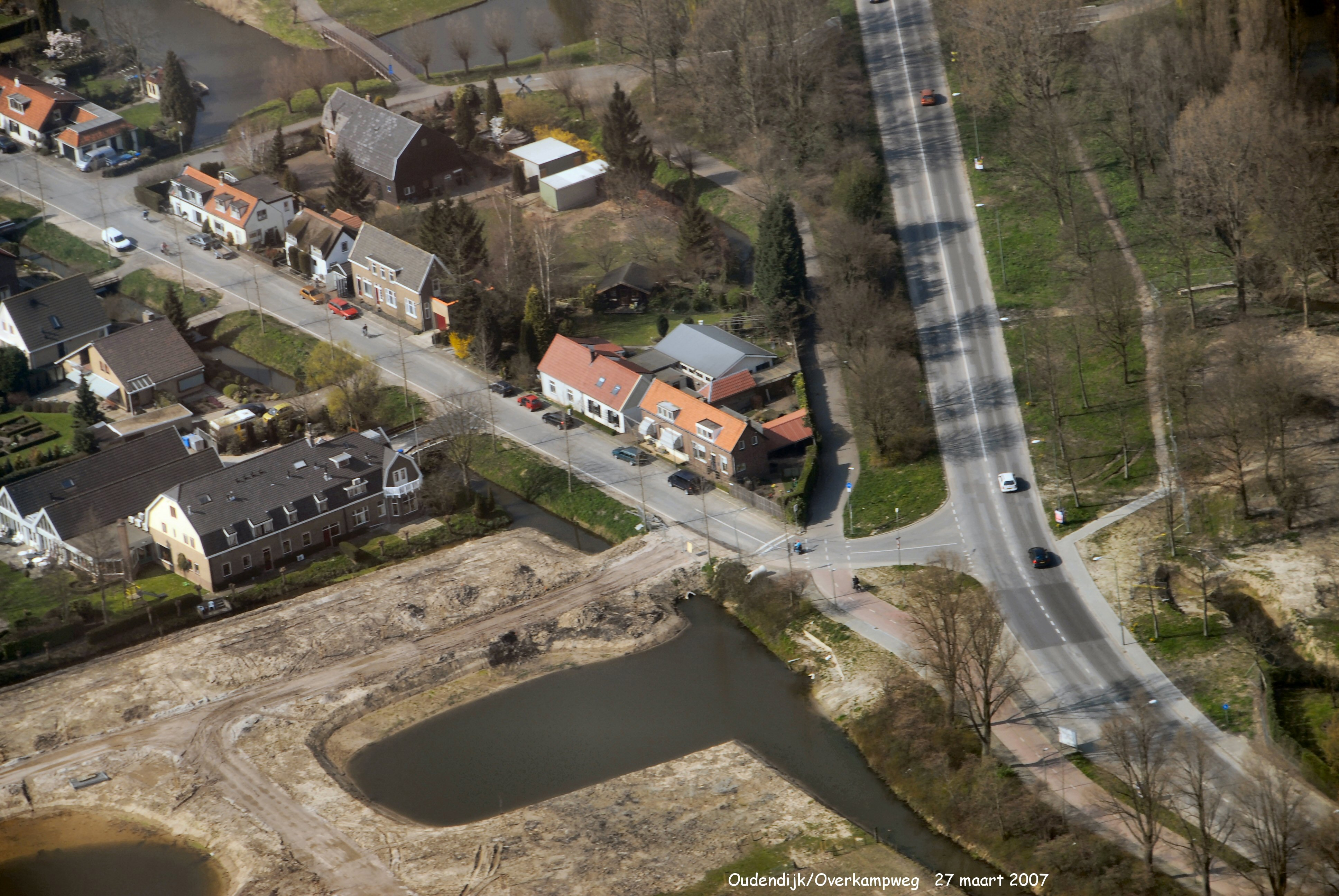 Links de Oudendijk met boerderij "Valkenhof" rechts de Overkampweg richting het ziekenhuis.